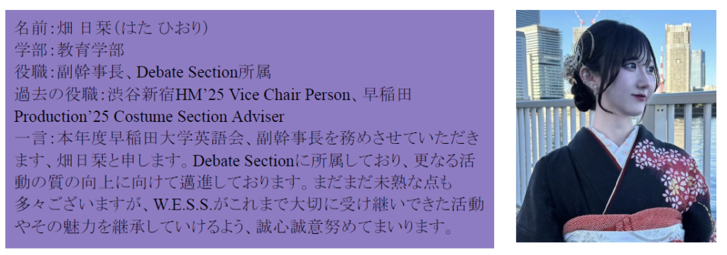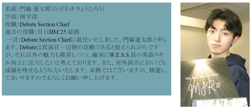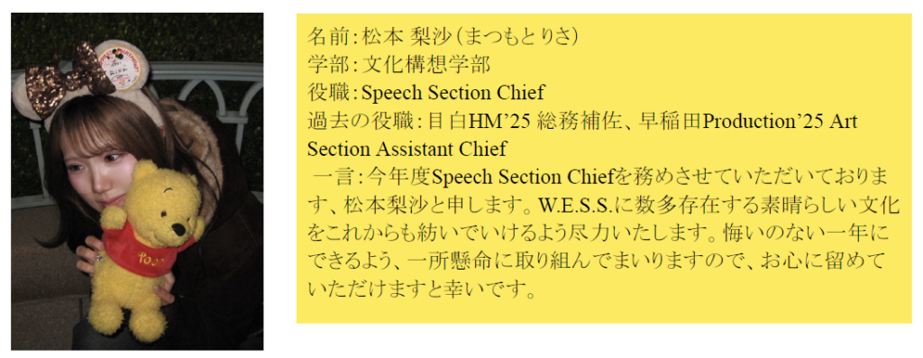 早稲田大学英語会 2026年度五役&各 Section Chief